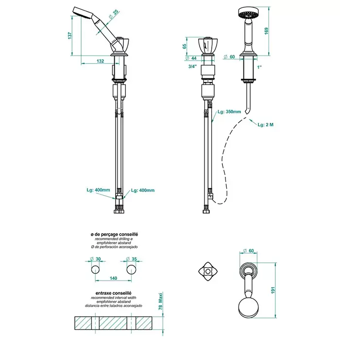 THG Petale de Cristal noir Ручной душ на борт ванны, 2 отв., цвет: золото/черный хрусталь