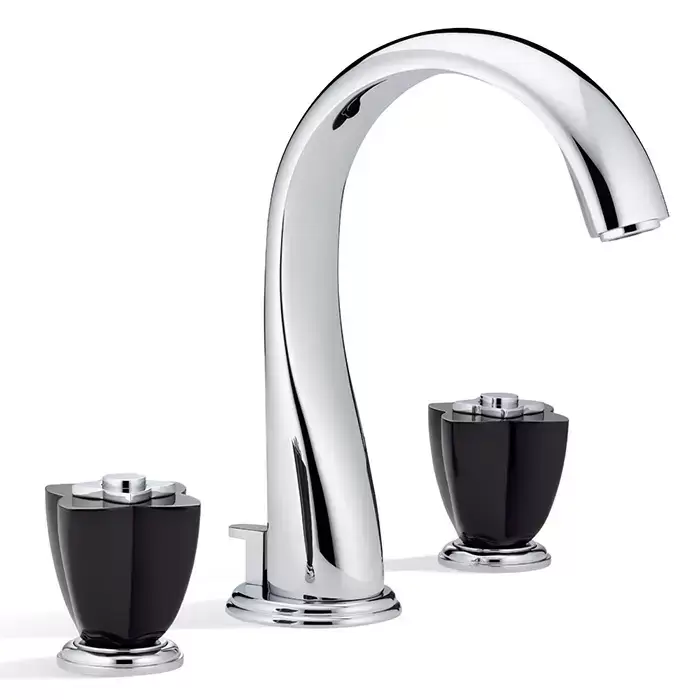 THG Petale de Cristal noir Смеситель для раковины, 3 отв., цвет: хром/черный хрусталь