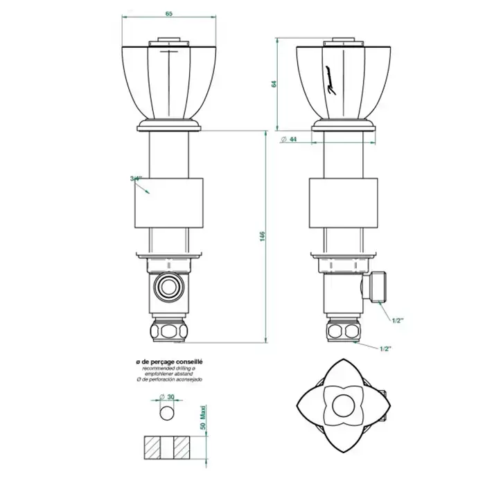 THG Petale De Cristal Noir Вентиль смесителя для раковины, цвет: хром