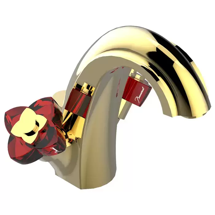 THG Petale De Cristal Rouge Смеситель для раковины на 1 отверстие, с донным клапаном, цвет: полированное золото