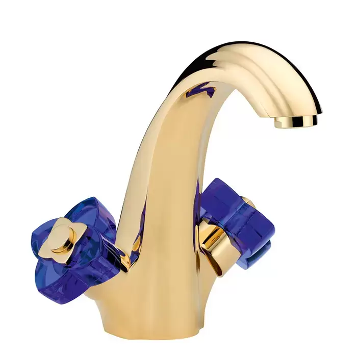 THG Pуtale de cristal bleu Смеситель для раковины, 1 отв., цвет: золото/синий хрусталь