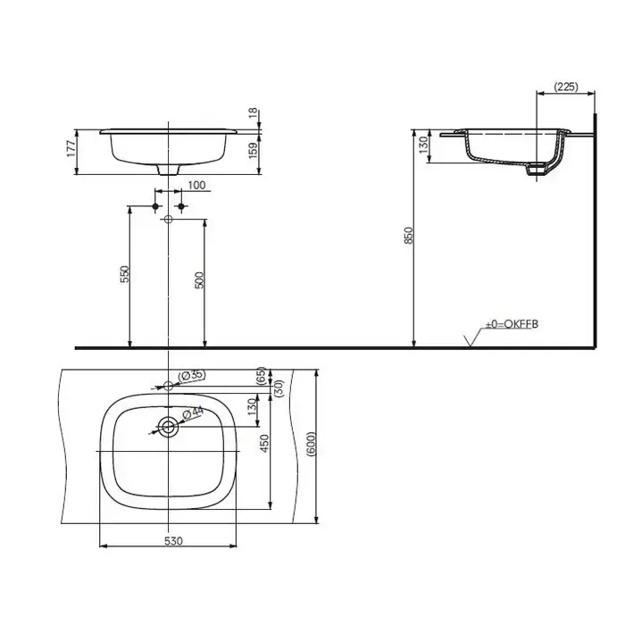 TOTO Public Раковина 53x45x17.7 см, без отв., полувстраеваемая, CeFiONtect, цвет: белый