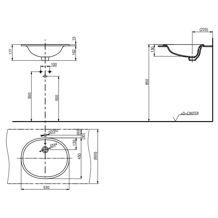 Toto Public Раковина 53x45x17.7см., встраиваемая сверху, без отв., с переливом, CeFiONtect, цвет: белый
