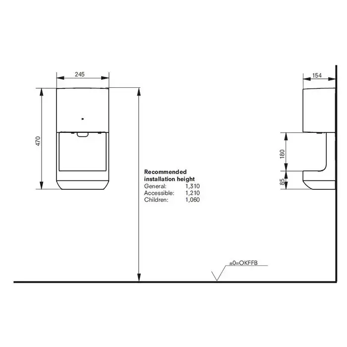 TOTO Public Сушилка для рук, 245x154x470мм, подвесная, цвет: белый