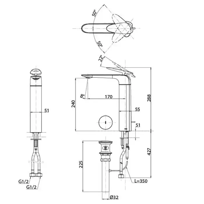 TOTO ZA Смеситель для раковины высокий на 1 отв,со сливным клапаном, цвет: хром