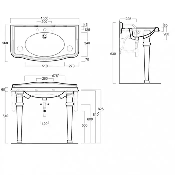 TW Bristol 874.2, Консоль напольная 105х56см., с раковиной на 1 отв., цвет:бронза
