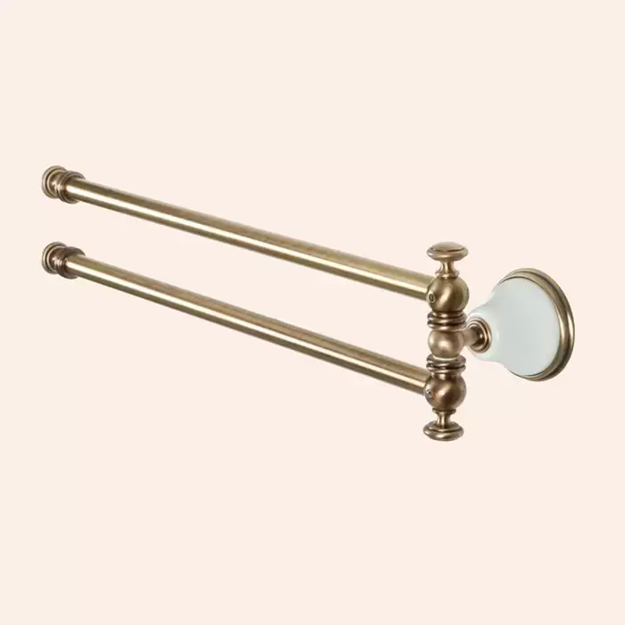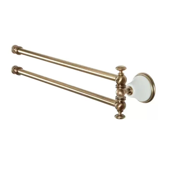 TW Harmony 013, вращающийся полотенцедержатель двойной 49см, подвесной, цвет: белый/бронза