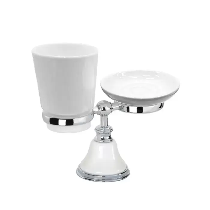 TW Harmony 141, настольный держатель с мыльницей и стаканом, керамика (бел), цвет: белый/хром