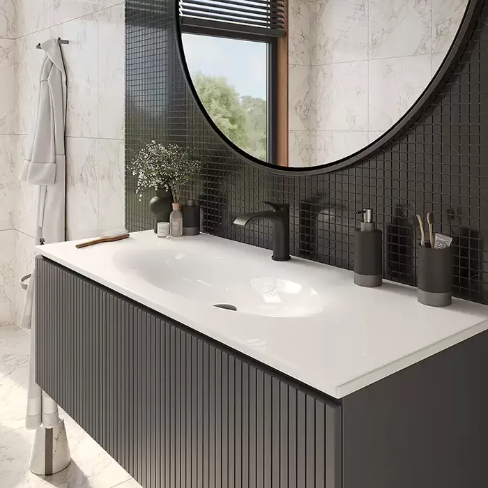 TW Shape комплект подвесной мебели 120х50см, с раковиной, с 1 выдвиж. ящиком с механизмом push-to-open, цвет: серый матовый RAL7016