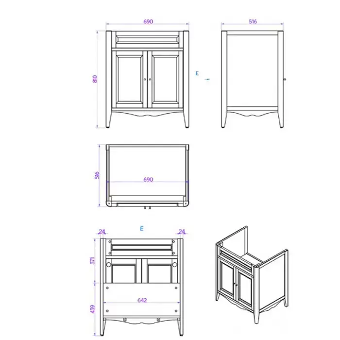 TW Veronica, База с раковиной Simas AR834bi*1 73x54см с 1отв. под смеситель , 2 расп. дверки, доводч. Blum, ручки: Riflesso бронза, напольная, цвет: Vintage