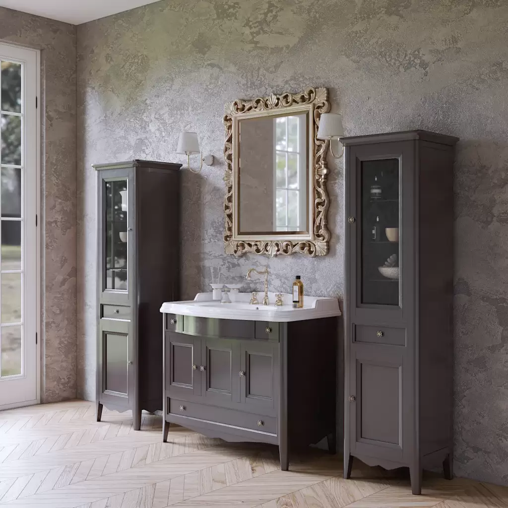 TW Veronica, База с раковиной Simas AR874bi*1 105x56см, 2 верх.ящ. 3 расп. дв. и 1 выдв. ящик, доводч. Blum, ручки: Riflesso бронза, напольный, цвет: GRIGIO