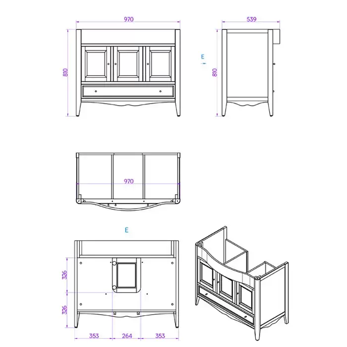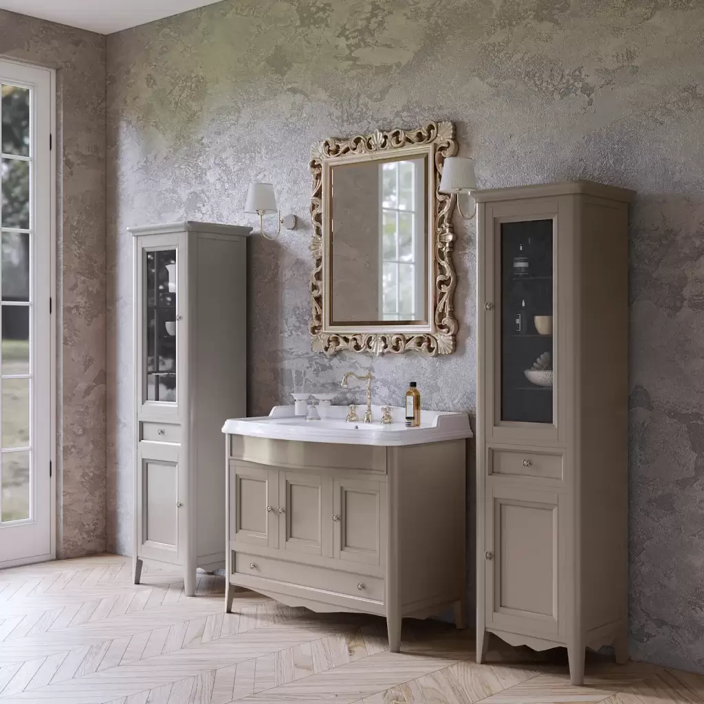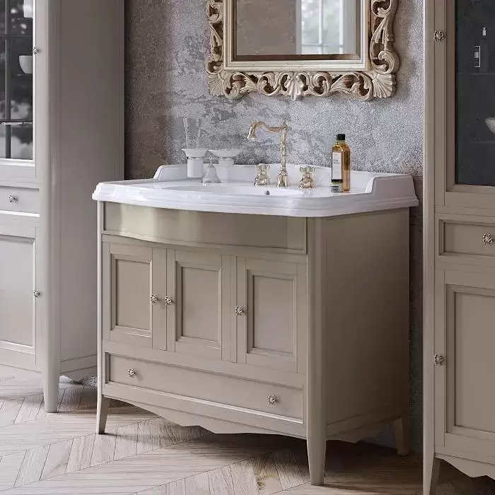 TW Veronica, База с раковиной Simas AR874bi*1 105x56см, с 1отв., 3 расп. дв. и 1ящик, доводч. Blum, ручки: Riflesso бронза, напольная, цвет: TORTORA