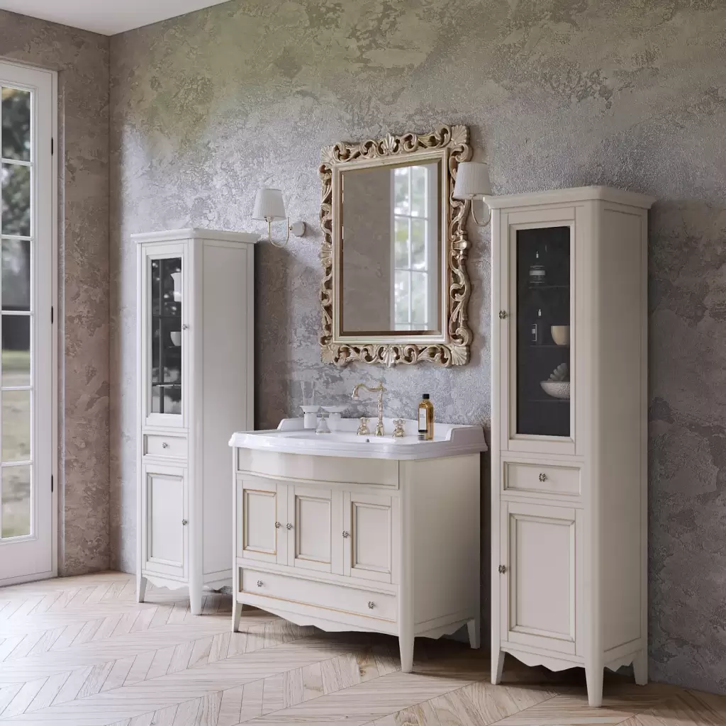TW Veronica, База с раковиной Simas AR874bi*1 105x56см, с 1отв., 3 расп. дв. и 1ящик, доводч. Blum, ручки: Riflesso бронза, напольная, цвет: VINTAGE