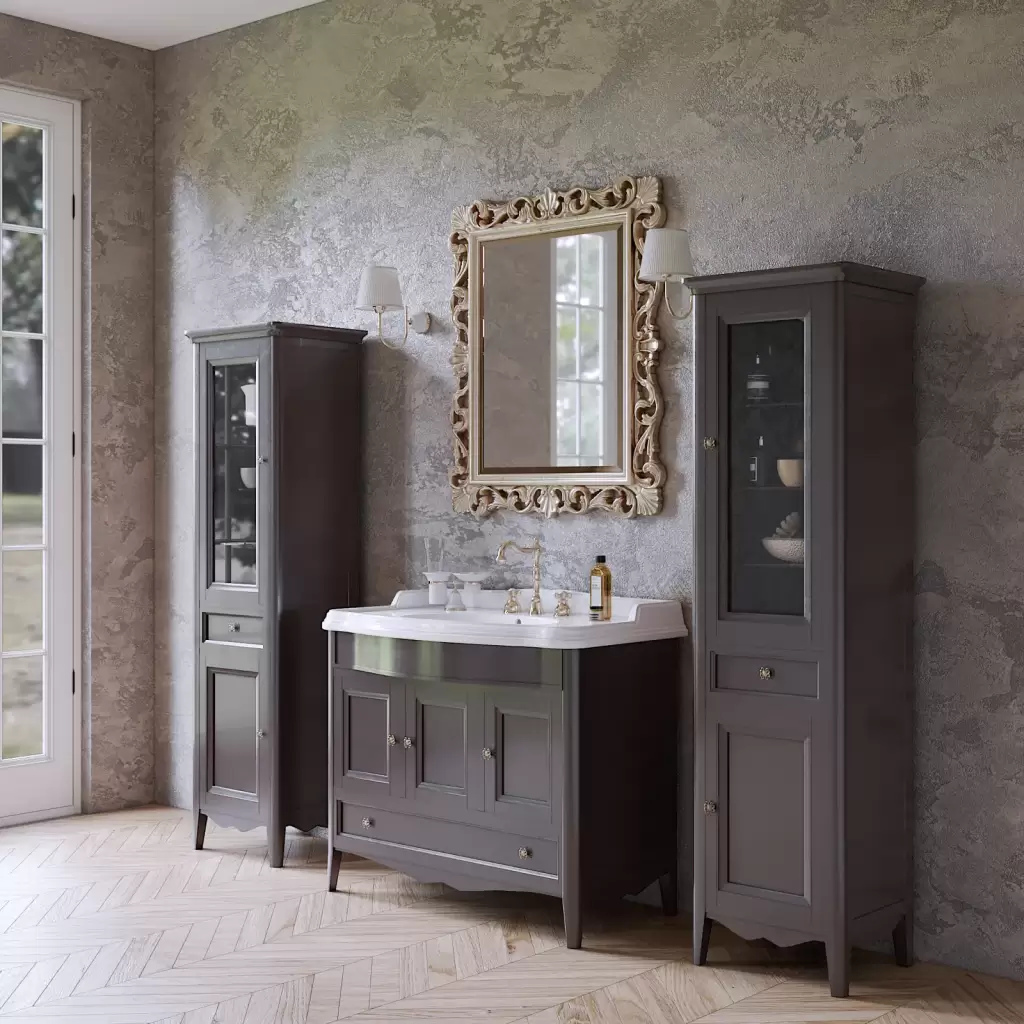 TW Veronica, База с раковиной Simas AR874bi*1 105x56см, с 1отв., 3 расп. дв. и 1ящик, доводч. Blum, ручки: Riflesso бронза, напольная, цвет: GRIDGIO