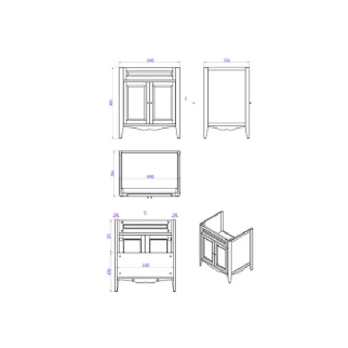 TW Veronica Nuovo комплект мебели напольный, с 2-мя дверцами, с доводчиками Blum, ручки: бронза, 68см, Цвет: tortora