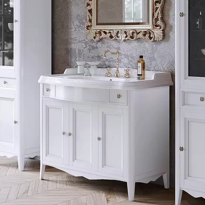 TW Veronica Nuovo комплект мебели с 2-мя выдвижными ящиками и 3-мя дверцами, с доводчиками Blum, ручки: бронза, 105см, напольный, цвет: белый