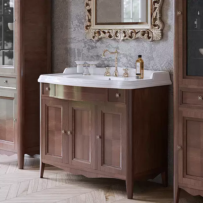 TW Veronica Nuovo комплект мебели с 2-мя выдвижными ящиками и 3-мя дверцами, с доводчиками Blum, ручки: бронза, 105см, напольный, Цвет: noce