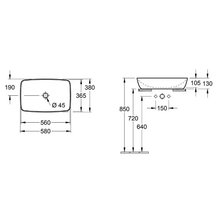 Villeroy&Boch Artis Раковина 58х38.5х12.5см., накладная, без отв., без перелива, TitanCeram, цвет: альпийский белый