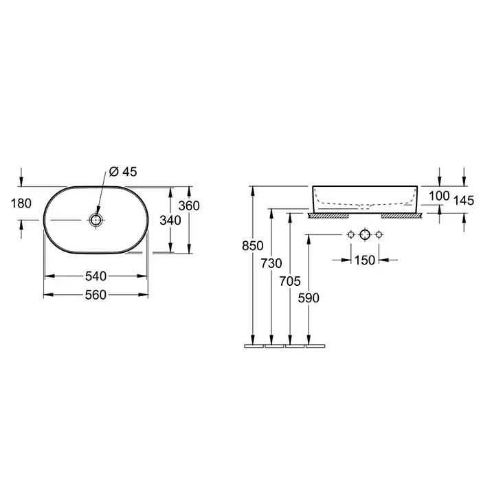 Villeroy&Boch Collaro Раковина накладная, 56x36х14.5см., без отв., цвет: альпийский белый