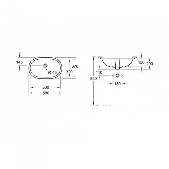 Villeroy&Boch O.novo Раковина для установки под столешницу 53х32х20.5, с переливом, цвет: альпийский белый