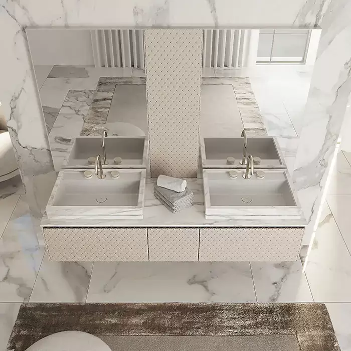 VITAGE milldue edition FOUR SEASONS Тумба подвесная 180х56х35см, с мраморной столешницей, с 2 раковинами, отделка: agata leather
