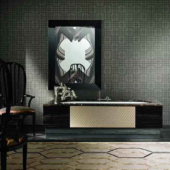 VITAGE milldue edition FOUR SEASONS Ванна 180х75 см, стальная, подача воды из водослива, в комплекте с сифоном, основанием и мраморным топом, отдельностоящая, цвет: Ebano/Emperador