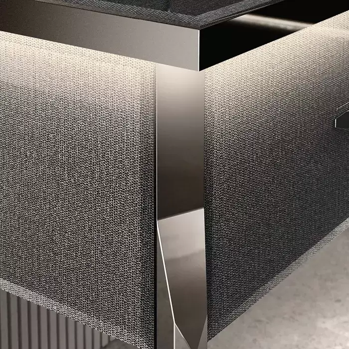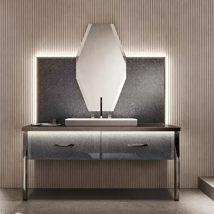 VITAGE milldue edition HILTON 05 Комплект мебели 158х58см напольный, раковина, зеркало, с подсветкой, отделка: стекло twill smoke, фурнитура: черный хром