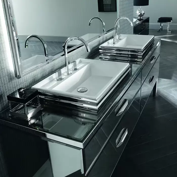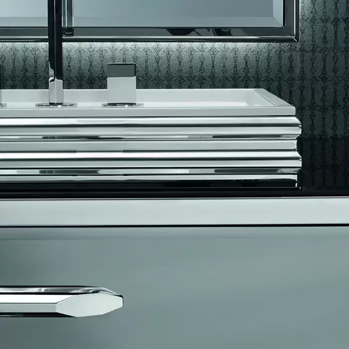 VITAGE milldue edition HILTON Комплект мебели с тумбой под раковину, раковиной ZURIGO63, зеркалом ZURIGO, 216 см, напольный, цвет: Fumè/сталь