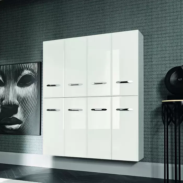VITAGE milldue edition Hilton Шкаф-пенал 144х32.6х170см, 4 двери, 4 полки, ручки сталь, напольный, цвет: белый