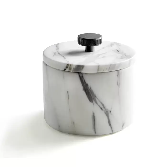 3SC Apuana 2.0 Контейнер с крышкой настольный d12хh8,5 см, цвет: мрамор White Statuario/никель черный матовый