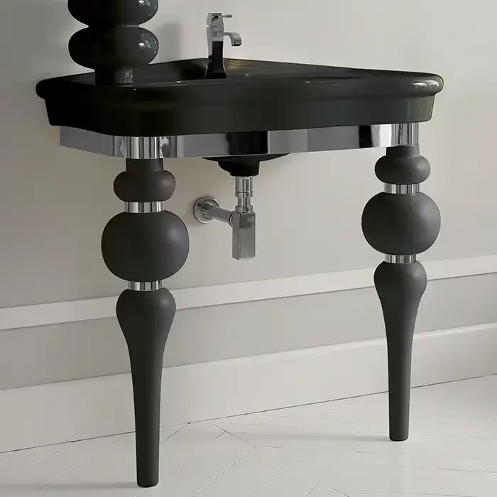 3SC Consolle Консоль с раковиной LANTE 90 см, в комплекте с сифоном, напольная, цвет: чёрный матовый/хром