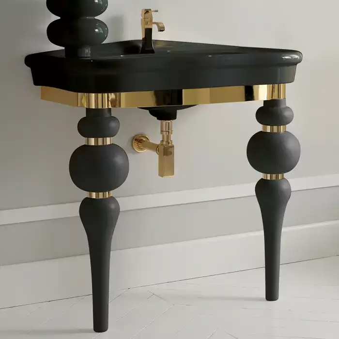 3SC Consolle Консоль Via Veneto 70х52хh96см, с раковиной LA11 и сифоном, напольная, цвет: черный матовый/золото 24к. Lucido