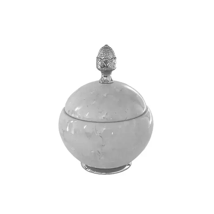 3SC Elegance Баночка универсальная, D=15/h18 см, с крышкой, настольная, цвет: мрамор botticino/хром