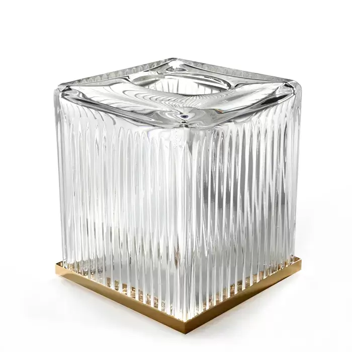 3SC ELEGANCE Контейнер для бумажных салфеток, 13х13х15 см, квадратный, настольный, цвет: прозрачный хрусталь/золото 24к.