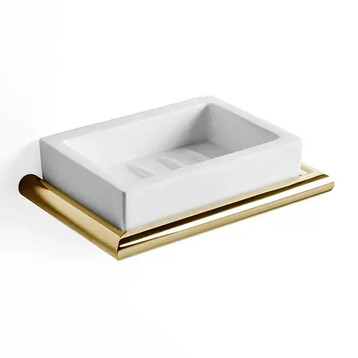 3SC Guy Мыльница подвесная, композит Solid Surface, цвет: белый матовый/золото 24к. Lucido