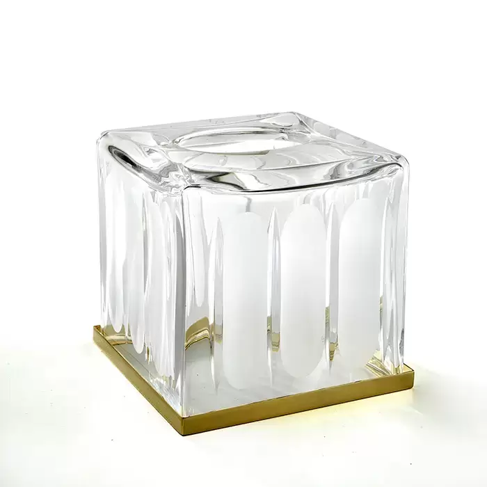 3SC Montblanc Контейнер для салфеток, 13х13хh15 см, настольный, цвет: прозрачный хрусталь/золото 24к. Lucido