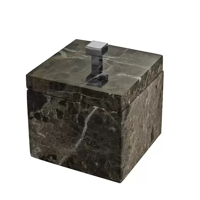 3SC Palace Marmo Баночка универсальная, 11x11xh13,5 см, с крышкой, настольная, цвет: мрамор Emperador dark/хром