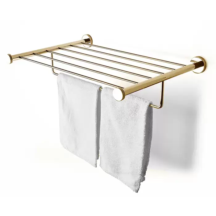 3SC Ribbon Полочка-решетка 50х35хh10см, с полотенцедержателем, цвет: золото 24к. Lucido