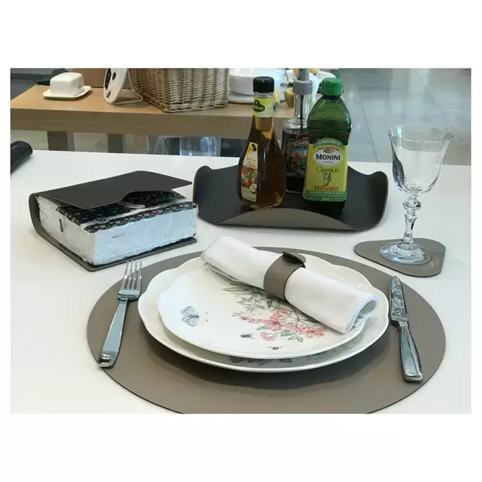 ADJ Плейсмат 40см., круглый, натуральная кожа, цвет: капучино/шоколад