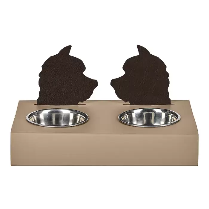 ADJ Подставка с мисками Dog, хром, 40x22xH7.5 см., цвет: капучино/шоколад