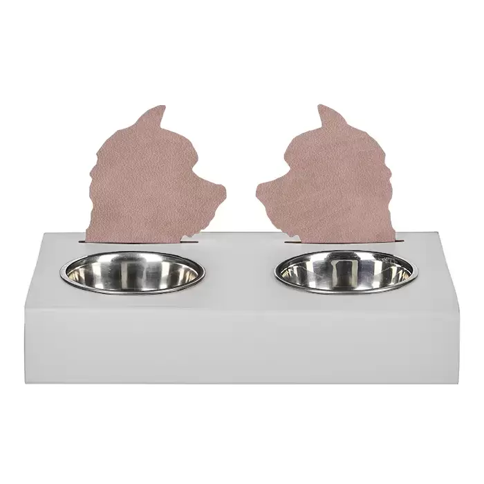 ADJ Подставка с мисками Dog, хром, 40x22xH7.5 см., цвет: устричный/пепельная роза