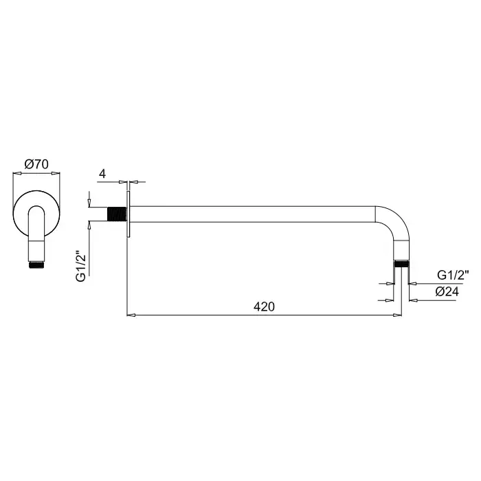 Almar Arms Кронштейн для верхнего душа 42см., настенный, с круглым отражателем, цвет: черный металл брашированный PVD