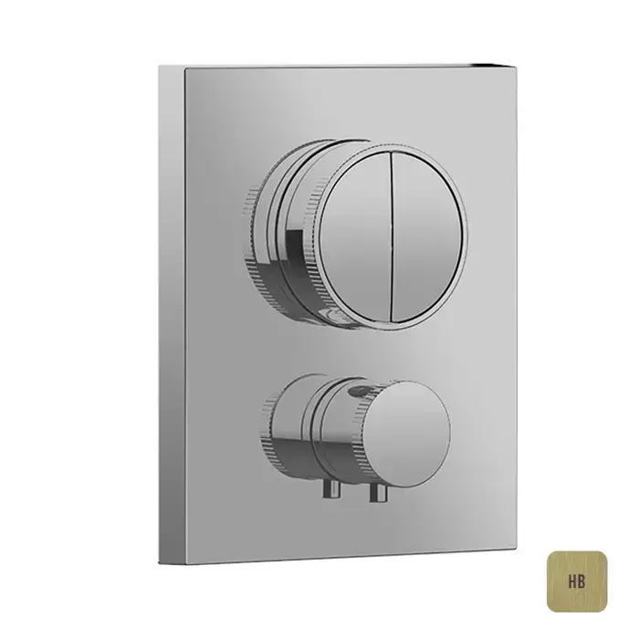 Almar Core Смеситель для душа, встраиваемый, термостатический, с кнопочным управлением для 2-х потребителей, цвет: латунь брашированная PVD