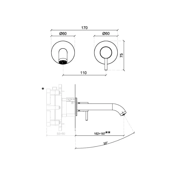 Almar Mixers Смеситель для раковины, настенный, цвет: медь брашированная PVD
