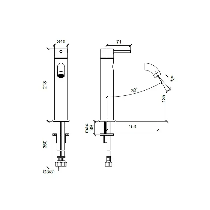Almar Mixers Смеситель для раковины, высокий, 1 отв., без донного клапана, цвет: High Brass Brushed PVD