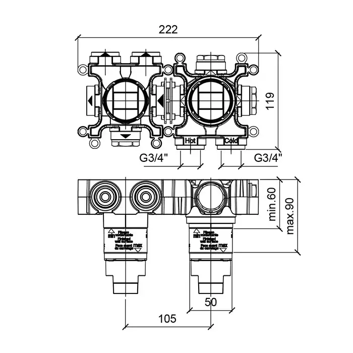 Almar Modular Встраиваемая часть термостатического смесителя с переключателем на 3 положения, горизонтальный модуль