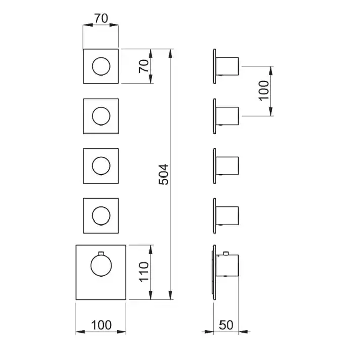 Almar Смеситель для душа, встраиваемый, термостатический на 4 потребителя, цвет: латунь брашированная PVD