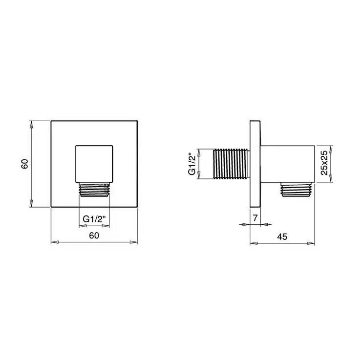 Almar Square Подключение для шланга, квадратное, цвет: хром