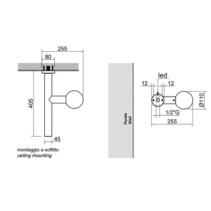 Antonio Lupi Apollo Верхний душ Ø45 мм., с LED подсветкой, потолочный монтаж, цвет: черный матовый