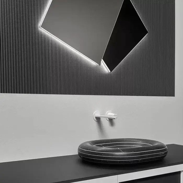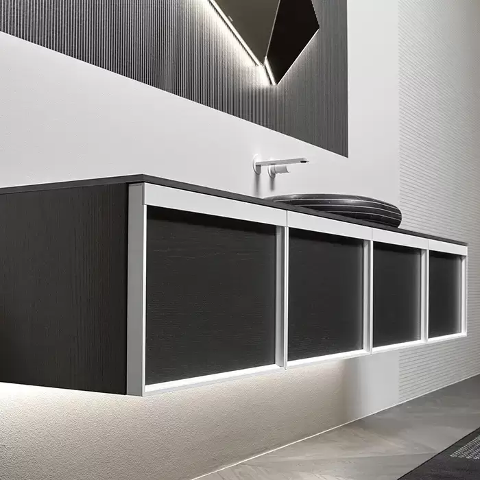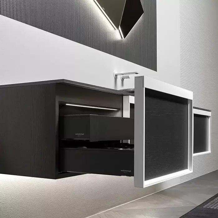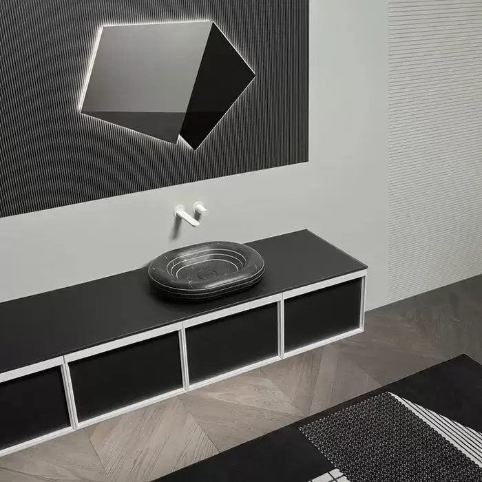 Antonio Lupi Bemade Комплект мебели с тумбами под раковину, раковиной Nero Marquinia, зеркалом с подсветкой, 54 см, подвесной, цвет: Rovere ardesia